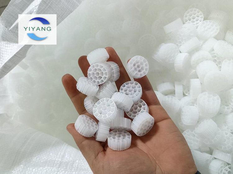無好氧生物流化床工藝中采用MBBR流化床填料作為生物膜載體填料,產(chǎn)品材質(zhì)HDPE高密度聚乙烯,這種填料為中空結(jié)構(gòu),正常運(yùn)行進(jìn),填料懸浮在水中。MBBR流化床填料內(nèi)部生長厭氧菌,產(chǎn)生反硝化作用可以脫氮;外部生長好氧菌,去除有機(jī)物,整個(gè)處理過程中同時(shí)存在硝化與反硝化過程。