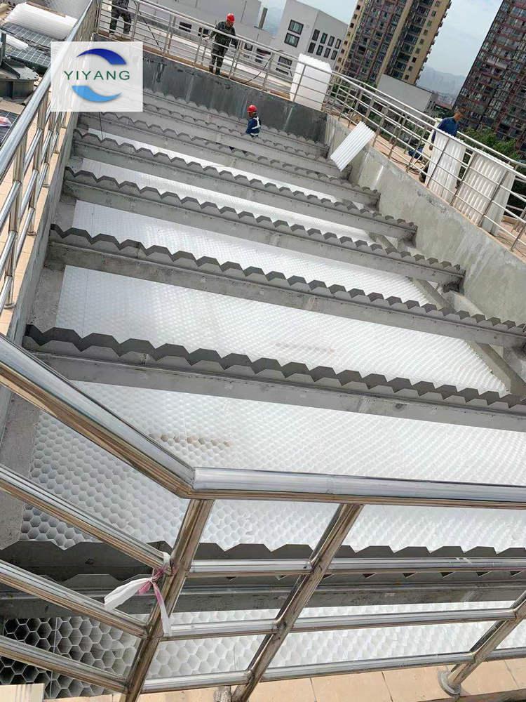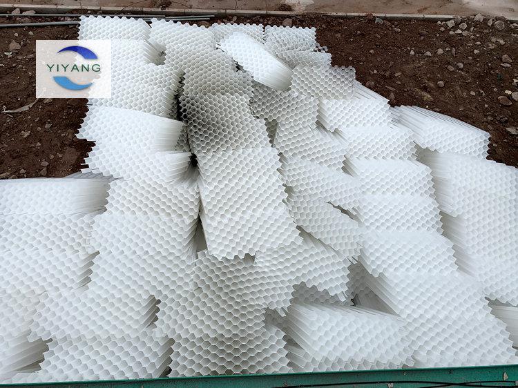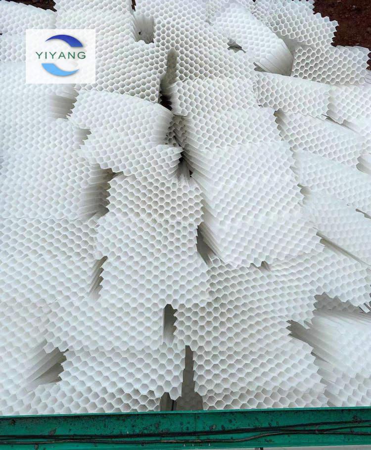 3、進(jìn)行蜂窩斜管填料的焊接:現(xiàn)場(chǎng)通電、場(chǎng)地寬敞、開始進(jìn)行六角蜂窩斜管填料的焊接服務(wù),上一張斜管和下一張斜管接觸的部分用加熱的電烙鐵粘結(jié),熱接縫完成后,一個(gè)單元的蜂窩斜管為1m2。以此類推將現(xiàn)場(chǎng)的蜂窩斜管填料焊接完畢,留部分備用,焊接陰角、陽角。