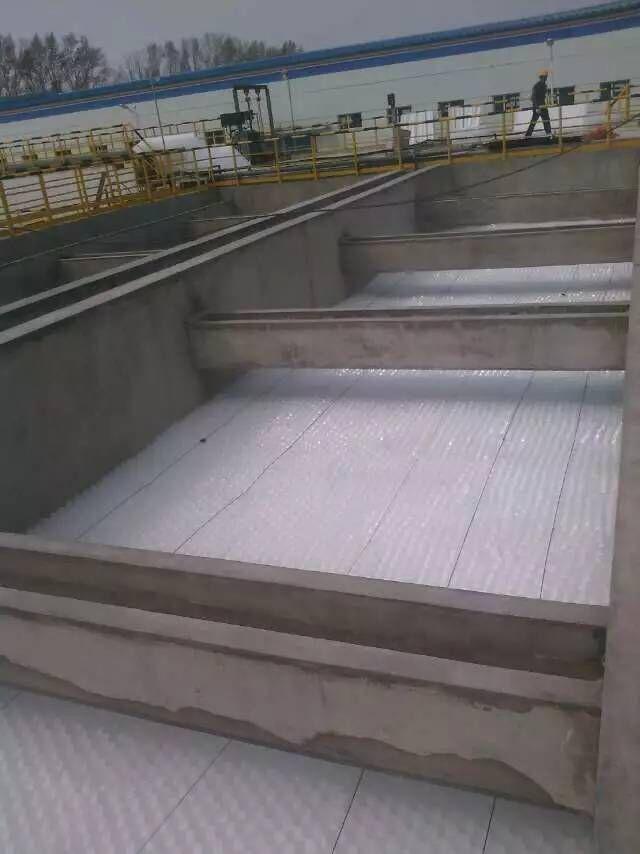 斜管填料是利用有用容積必定的條件下,添加堆積面積,可使去除率進步,把多層沉淀底板做成必定傾斜度,并進行橫向分隔,形成管狀(矩形或六角形),斜管與水平面成60°夾角,放置于沉淀中,水從下向上活動,顆粒則沉于斜管底部,當(dāng)顆粒累積到達必定程度時,便主動滑下,從而使污水中的固體顆粒得以堆積于預(yù)訂的積泥區(qū),到達污水凈化的目的,當(dāng)斜管上部呈現(xiàn)青時需要及時進行清理,斜管頂上已成長的青可用消防水嘴以壓力100kPa進行鏟除,壓力勿過高。定期沖洗斜管孔徑里的污泥。