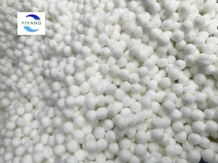 纖維球是由纖維絲扎成長束,根據(jù)纖維球直徑規(guī)格要求用繩子打結(jié)后,裁剪制成。纖維球外觀有白色柔軟球形、乳黃色柔軟球狀,分別為普通纖維球和改性纖維球兩種,根據(jù)生產(chǎn)選用的原材料不同而有差異,以改性纖維球的水處理除油、過濾截污效果更好;普通纖維球的應(yīng)用也十分廣泛,產(chǎn)品性能穩(wěn)定,水過濾、截污、除油效果佳,是污水精細(xì)過濾凈化的好材料。